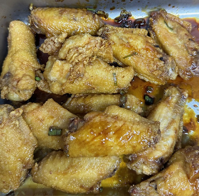 Fried Chicken pieces coated in a sweet and tangy sauce.
